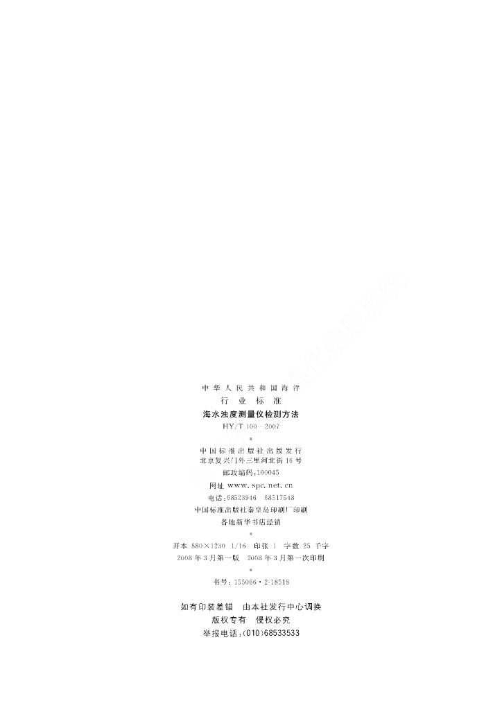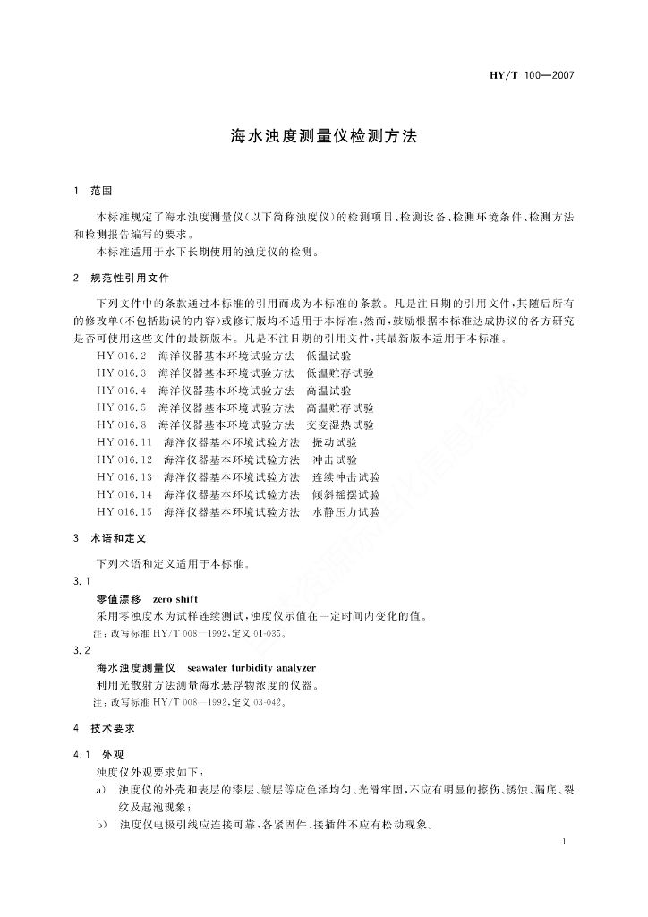 HY/T 100-2007 海水浊度测量仪检测方法