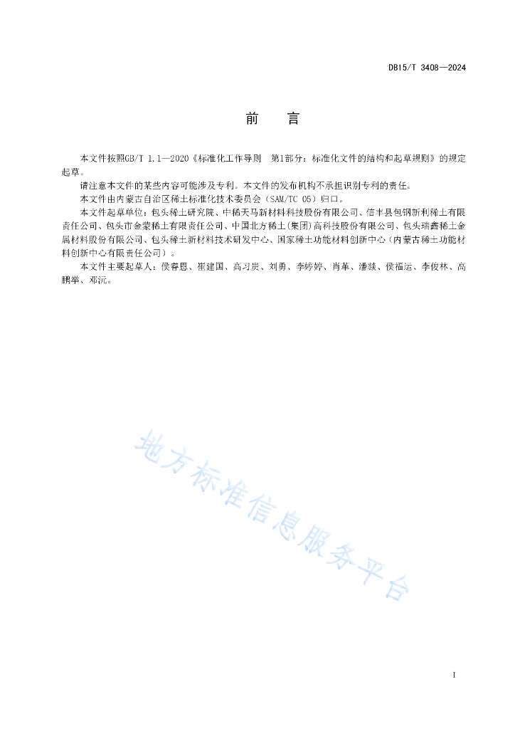- 提出单位:内蒙古自治区稀土标准化技术委员会