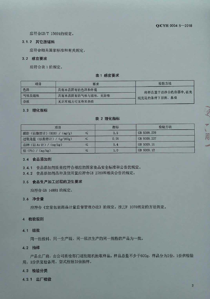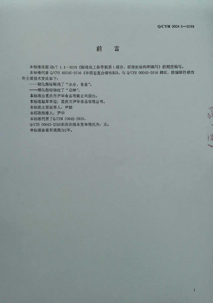 Q/CYH 0004S-2018 半固态复合调味料