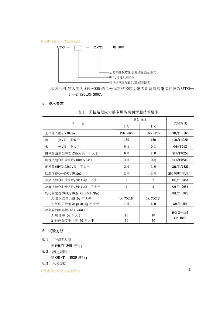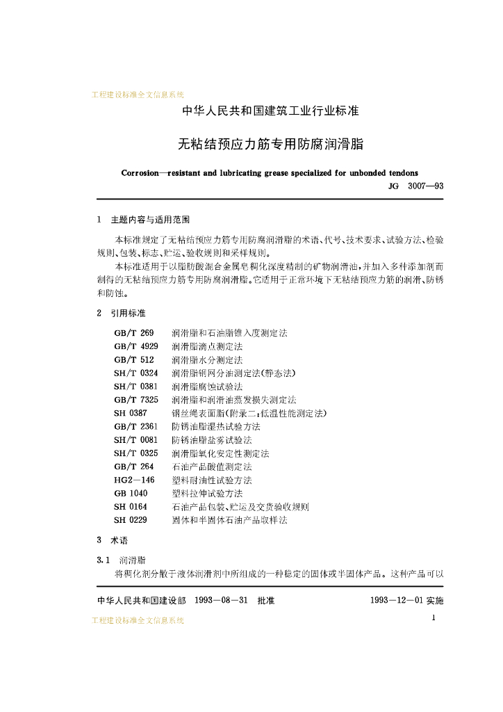 JG 3007-1993 无粘结预应力筋专用防腐润滑脂