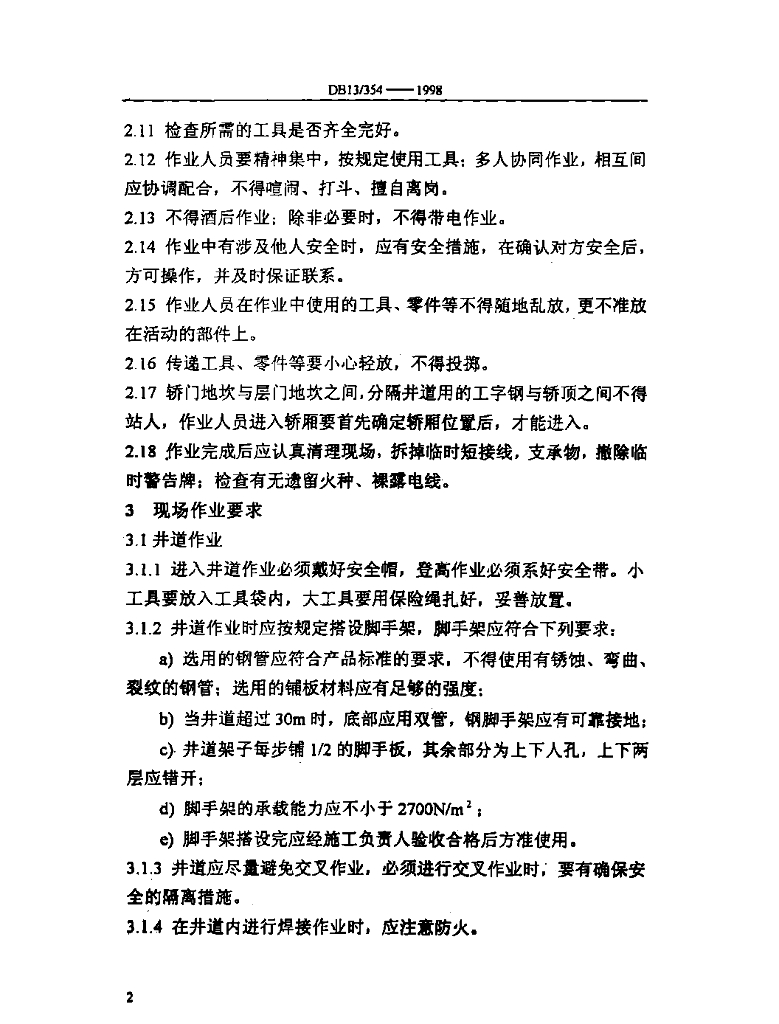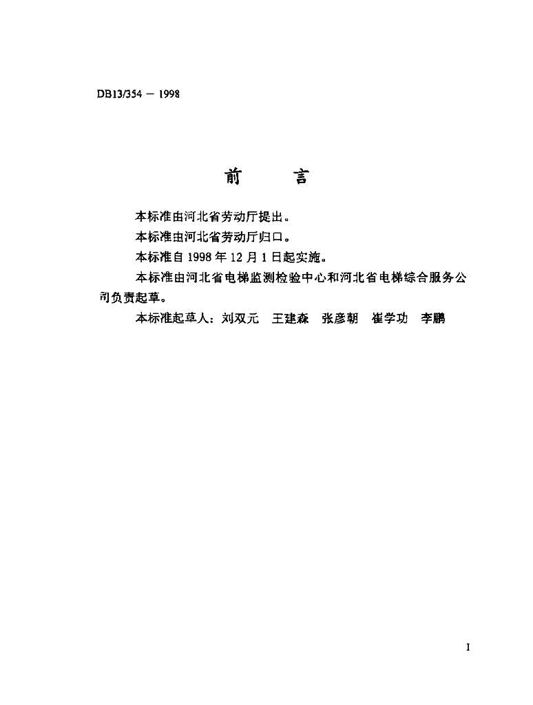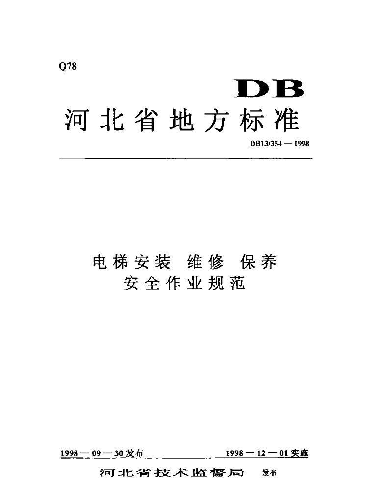 DB13/ 354-1998 电梯安装、维修、保养、安全作业规范