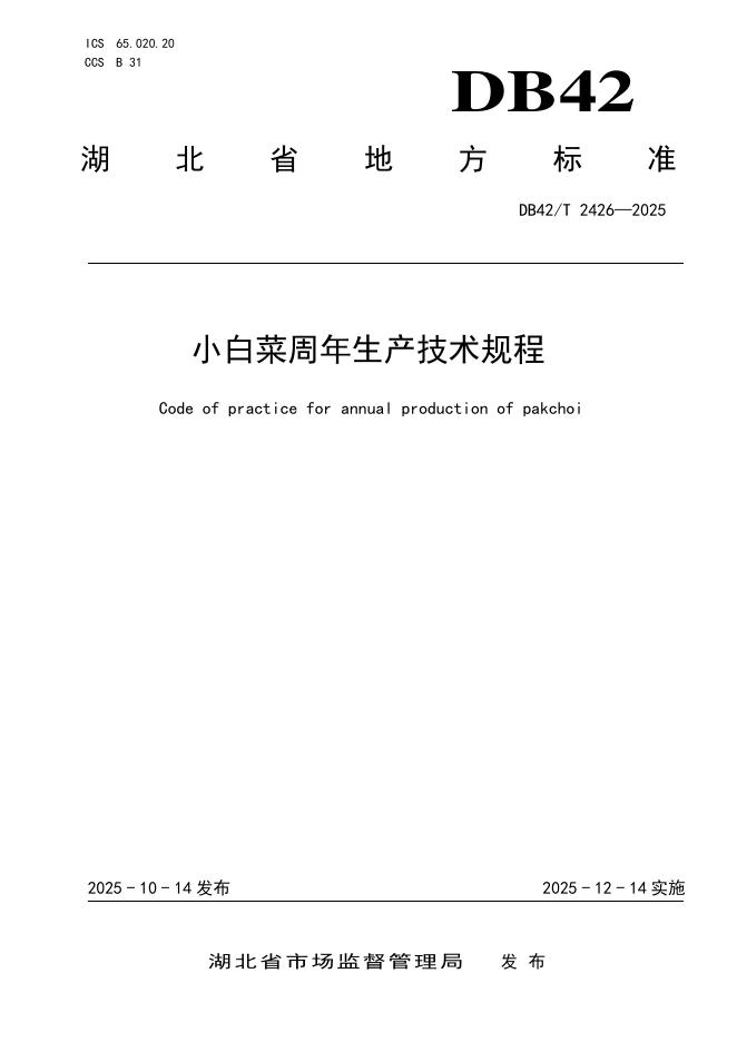 DB42/T 2426-2025 小白菜周年生产技术规程