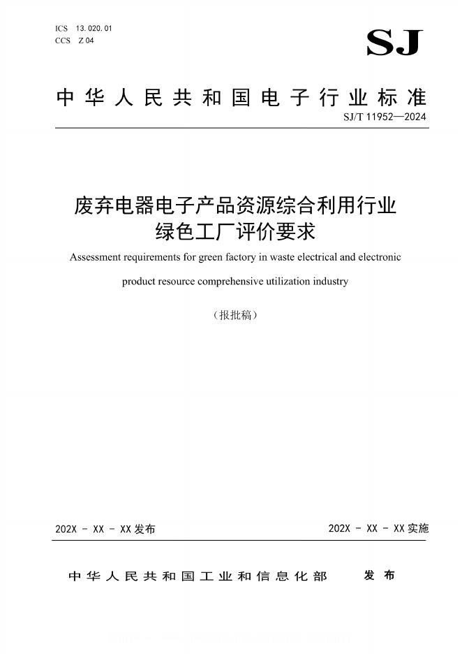 SJ/T 11952-2024 废弃电器电子产品资源综合利用行业 绿色工厂评价要求