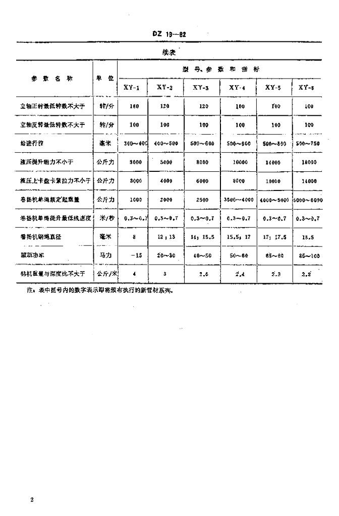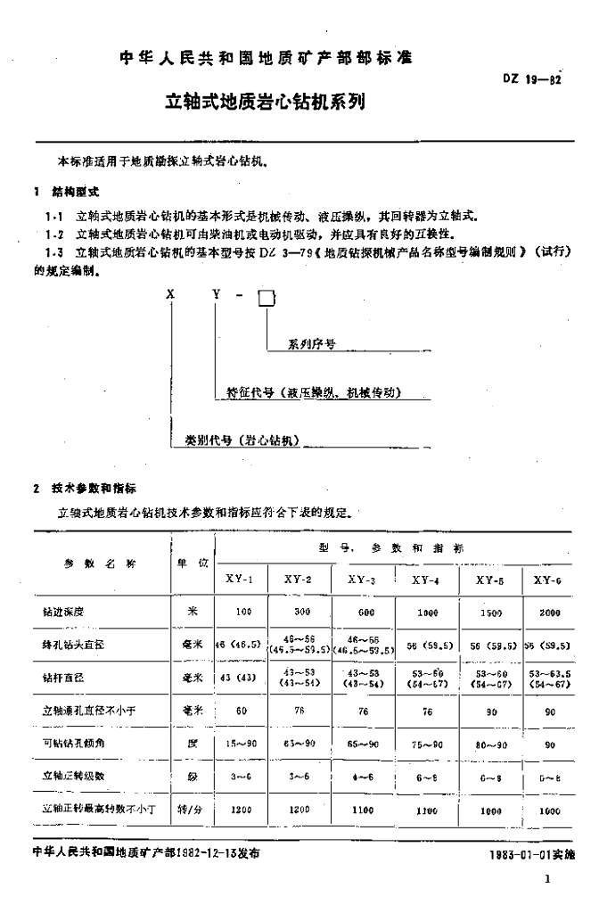 DZ 19-1982 立轴式地质岩心钻机系列
