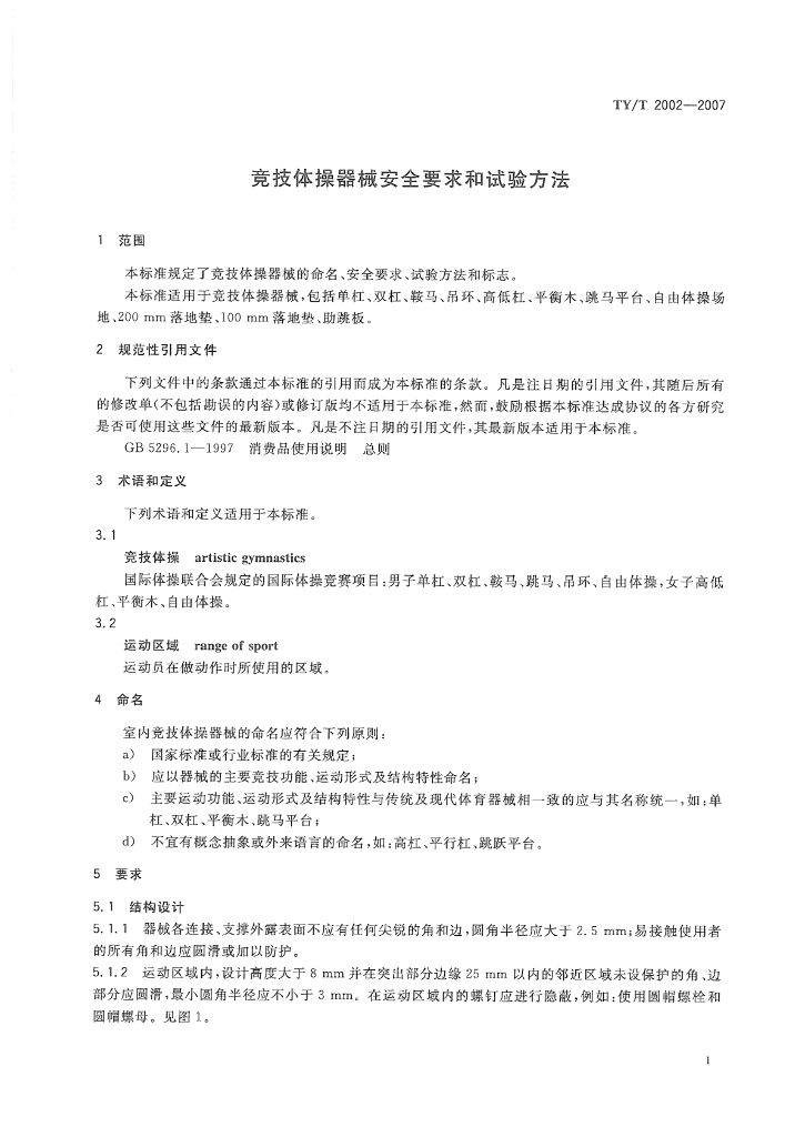 TY/T 2002-2007 竞技体操器械安全要求和试验方法