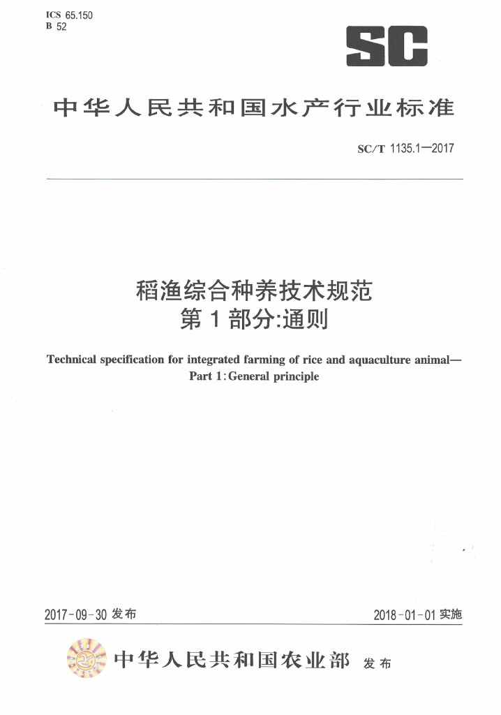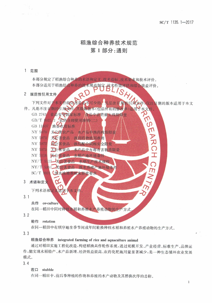 SC/T 1135.1-2017 稻渔综合种养技术规范 第1部分:通则