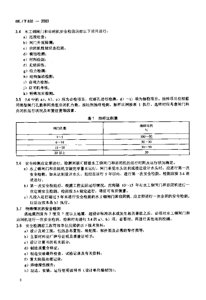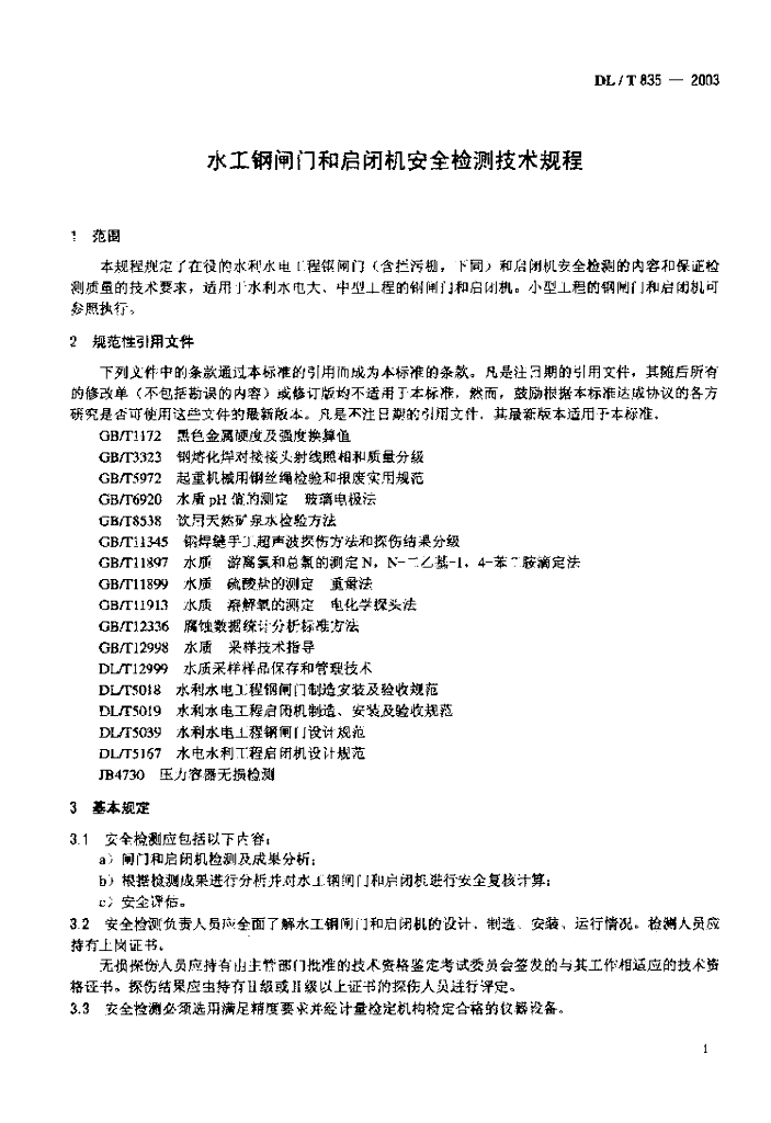 DL/T 835-2003 水工钢闸门和启闭机安全检测技术规程