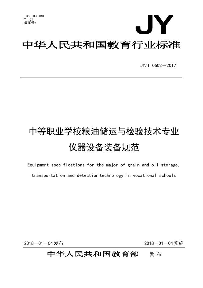JY/T 0602-2017 中等职业学校粮油储运与检验技术专业仪器设备装备规范