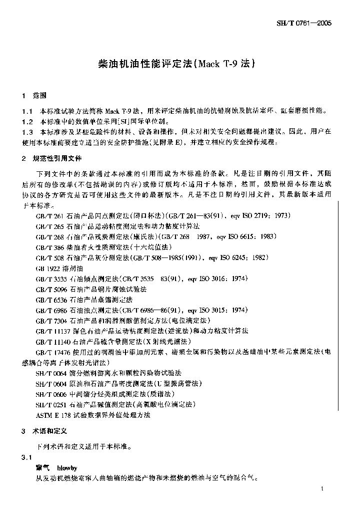 SH/T 0761-2005 柴油机油性能评定法(MackT-9法)
