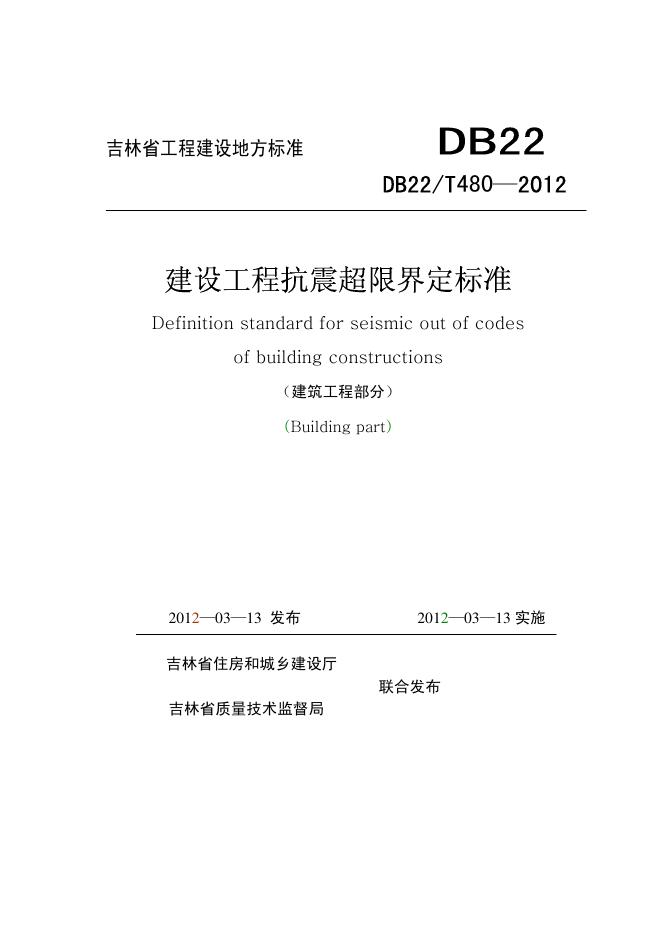 DB22/T 480-2012 建设工程抗震超限界定标准(建筑工程部分)