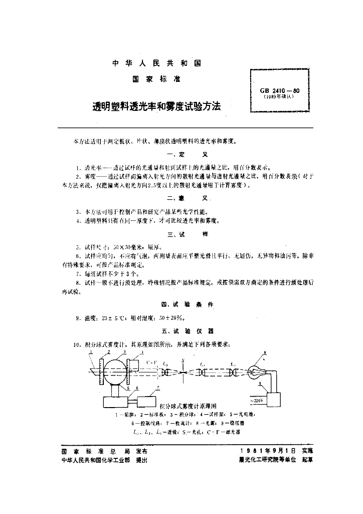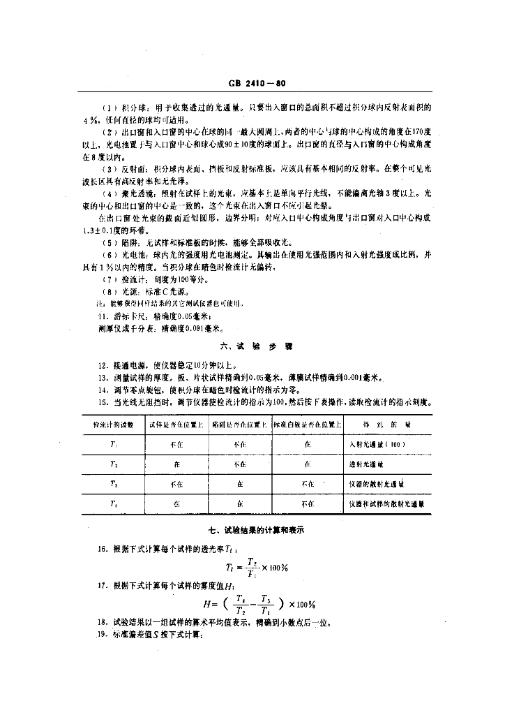 GB/T 2410-1980 透明塑料透光率和零度试验方法