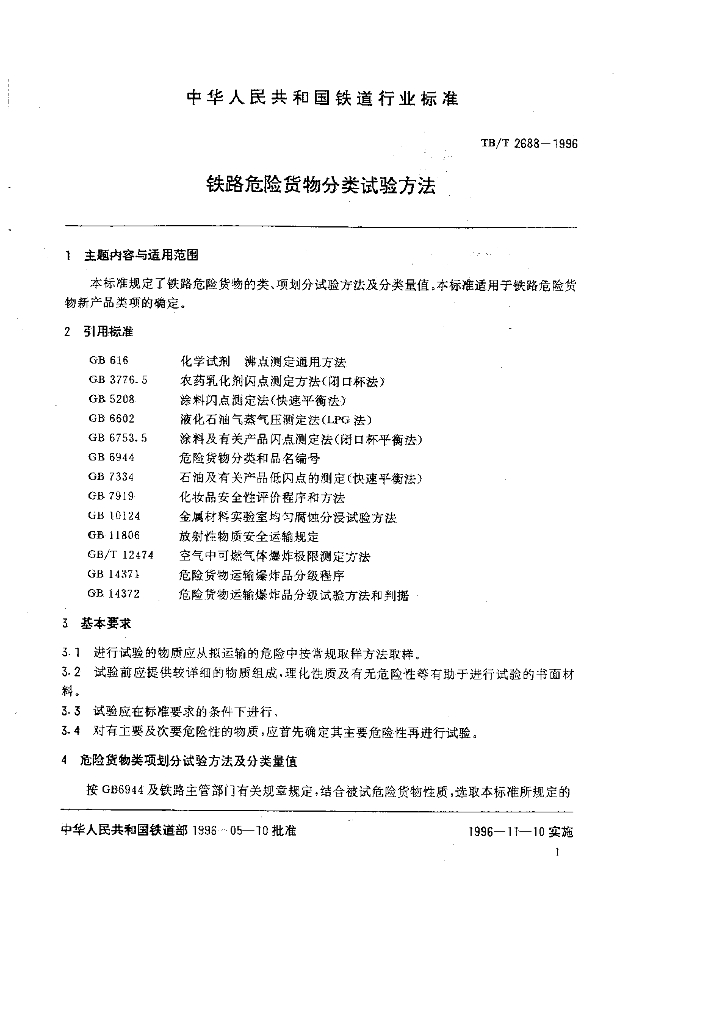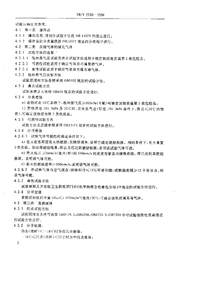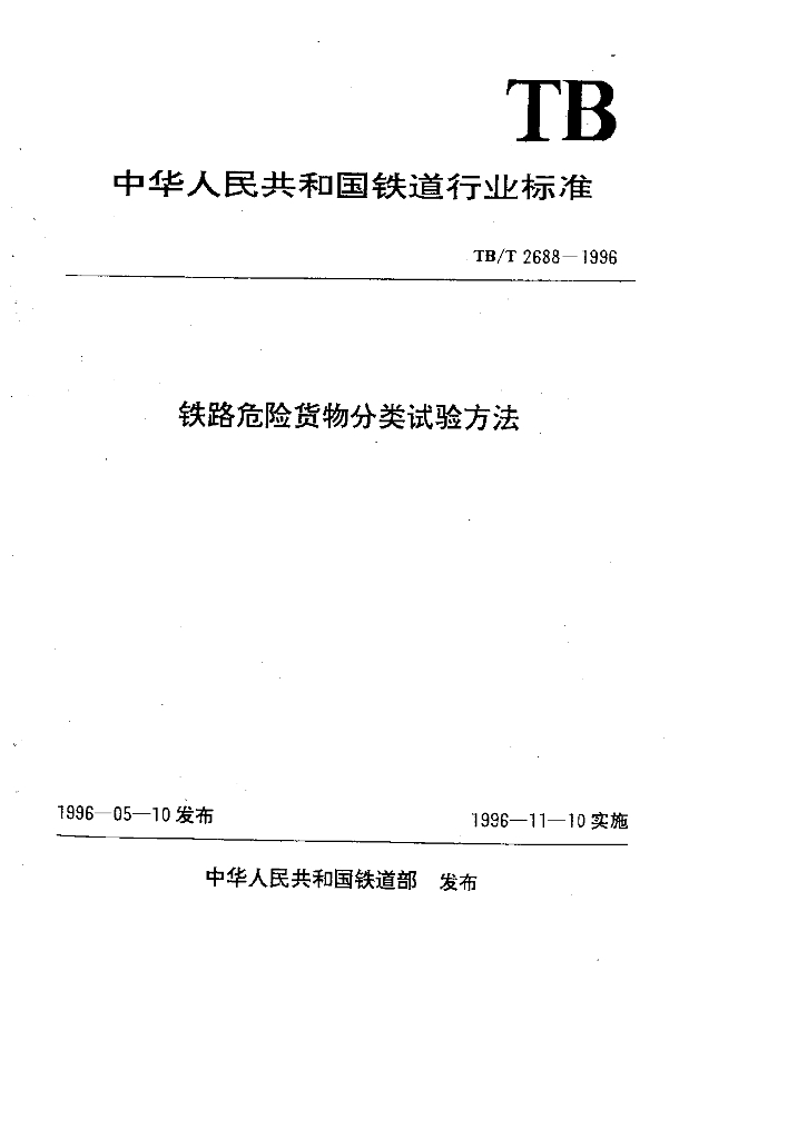 TB/T 2688-1996 铁路危险货物分类试验方法