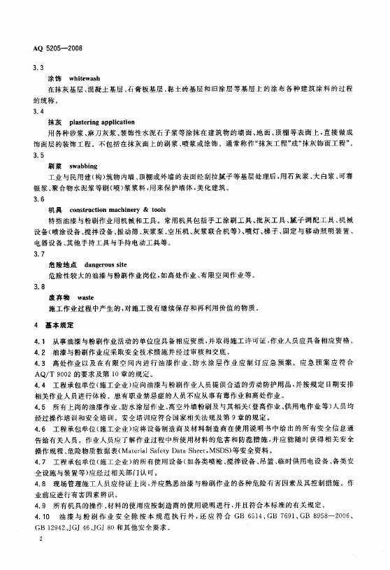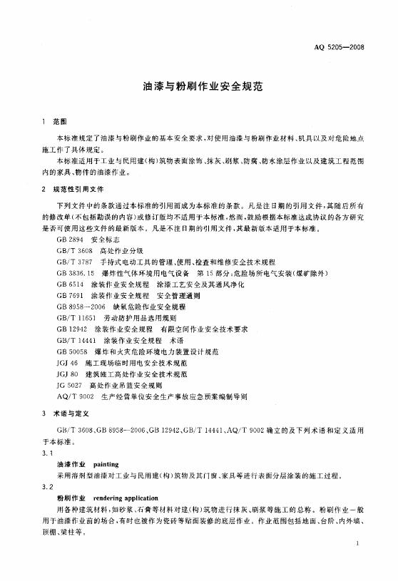 AQ 5205-2008 油漆与粉刷作业安全规范