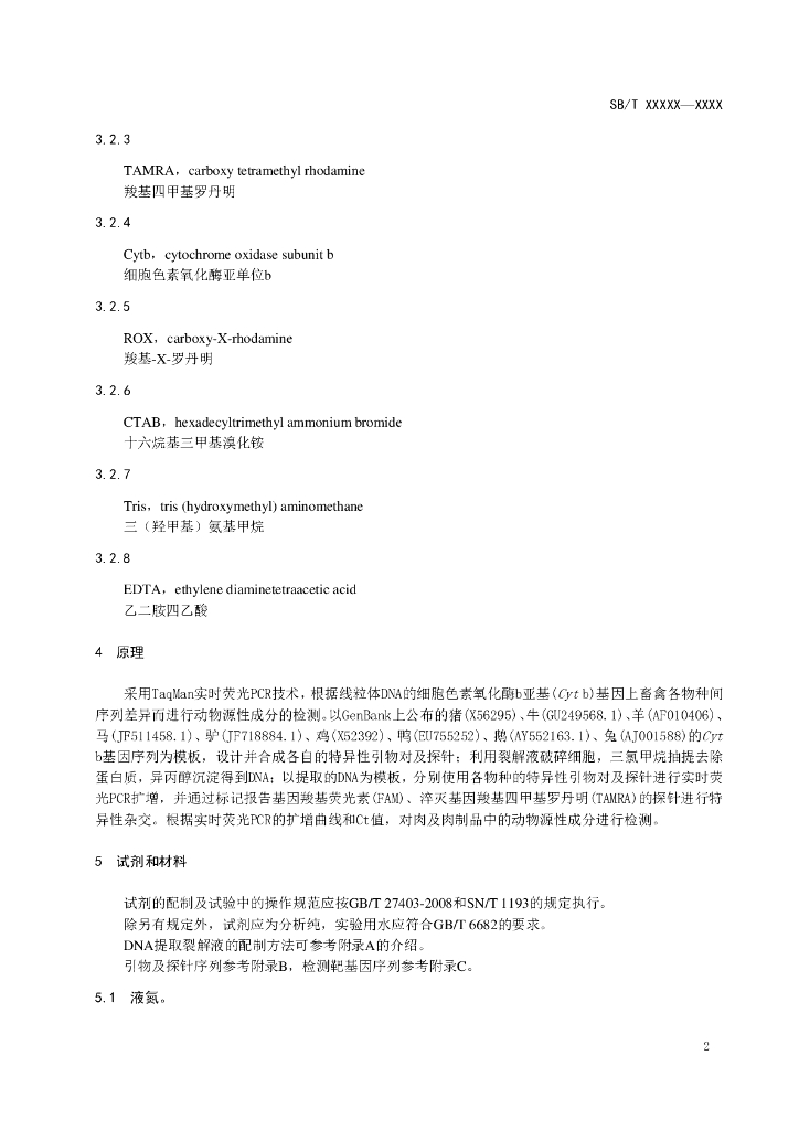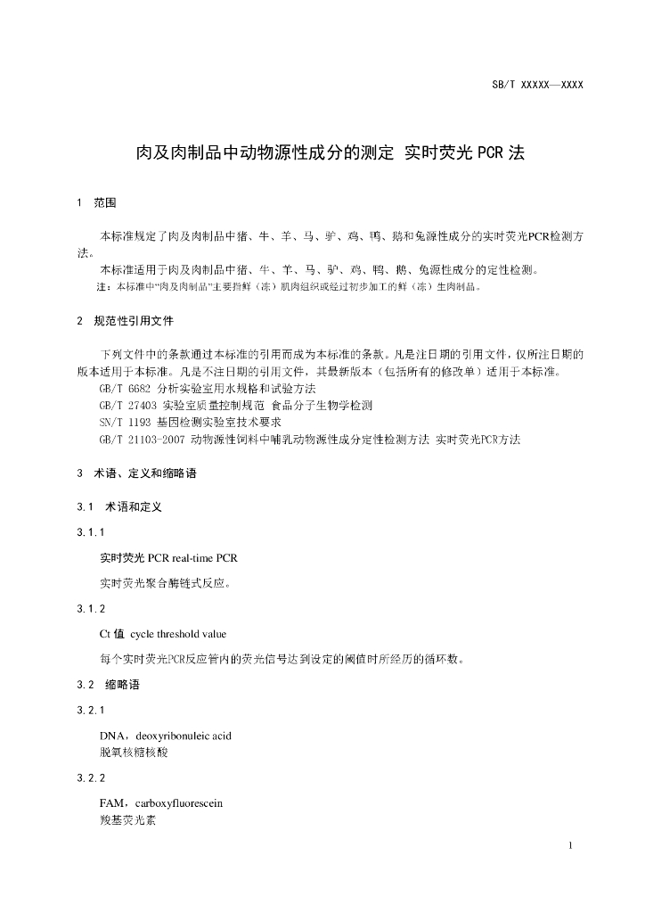 SB/T 10923-2012 肉及肉制品中动物源性成分的测定 实时荧光PCR法