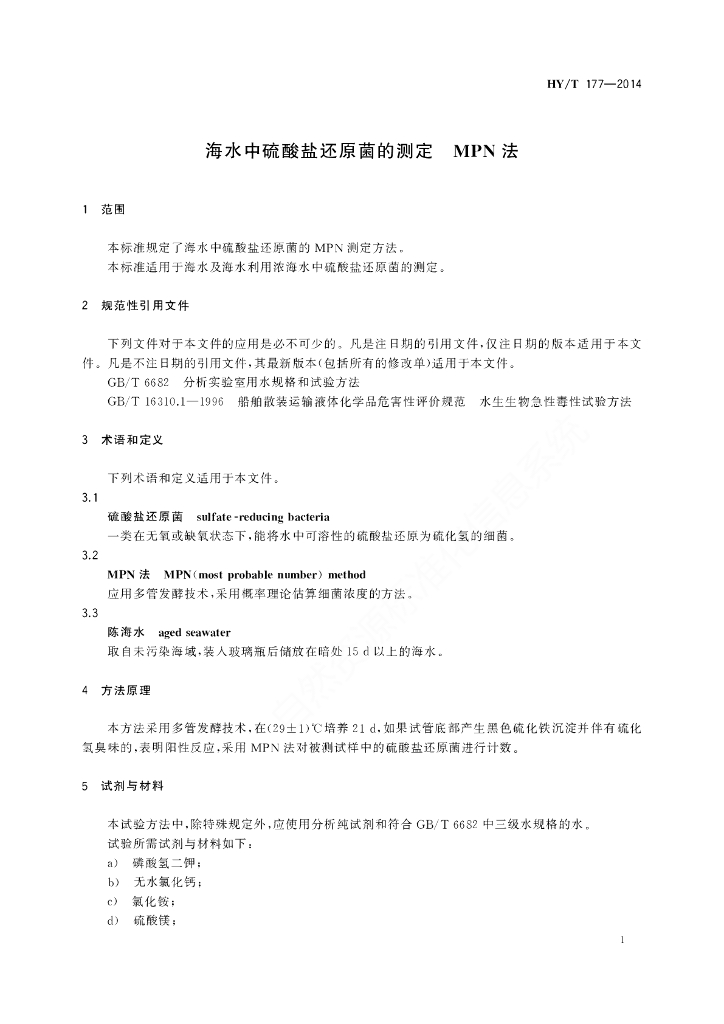 HY/T 177-2014 海水中硫酸盐还原菌的测定 MPN法