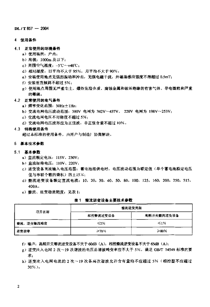 DL/T 857-2004 发电厂 变电所蓄电池用整流逆变设备技术条件