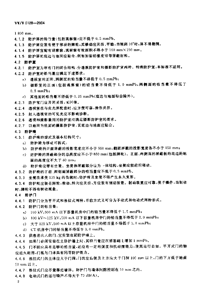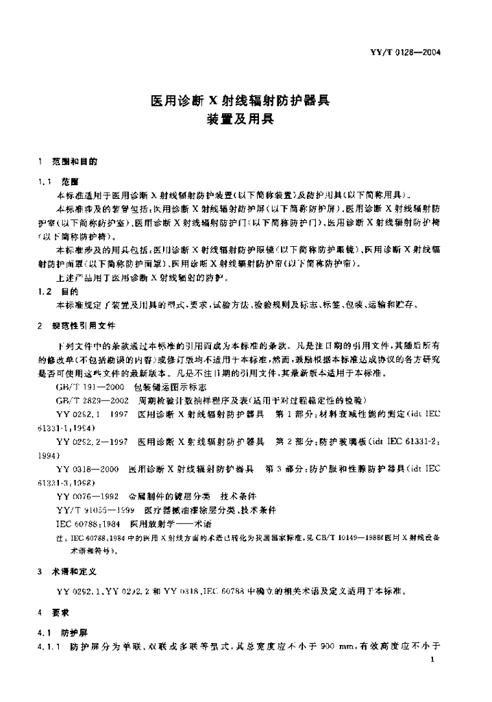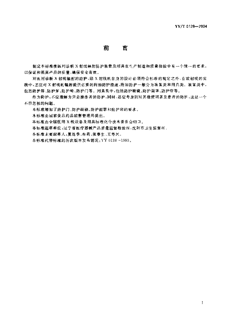 YY/T 0128-2004 医用诊断X射线辐射防护器具装置及用具