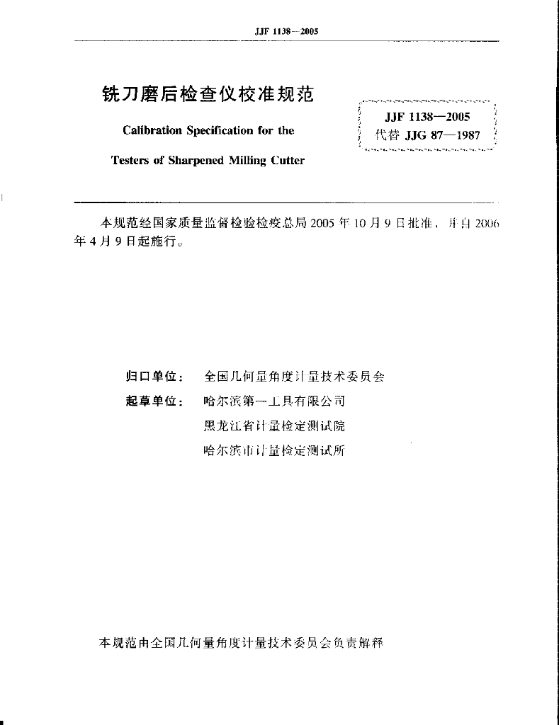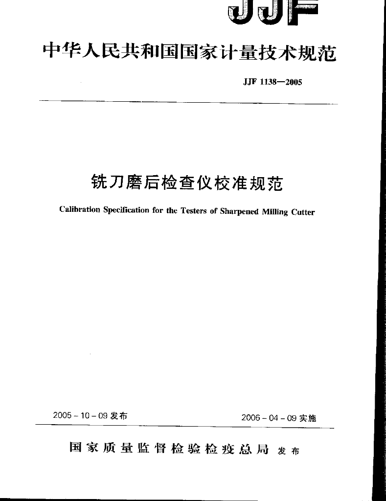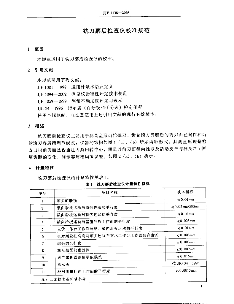 JJF 1138-2005 铣刀磨后检查仪校准规范