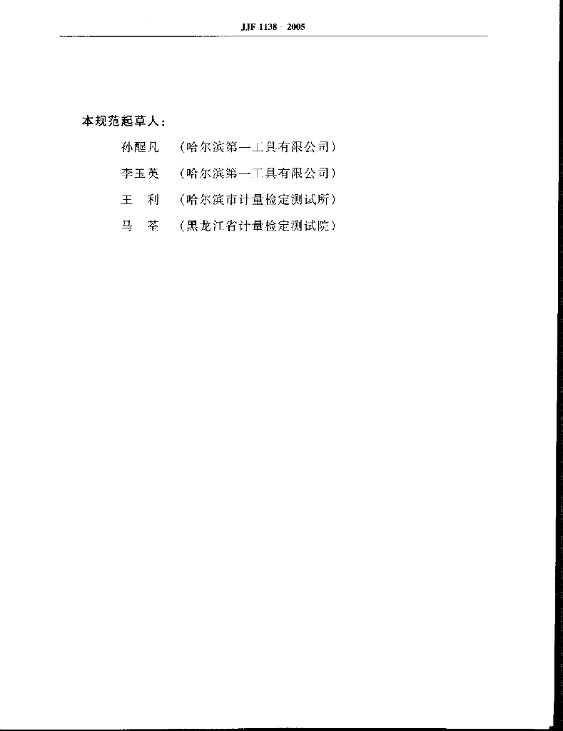 孙醒凡(哈尔滨第一工具有限公司)、李玉英(哈尔滨第一工具有限公司)、王利(哈尔滨市计量检定测试所)、马荃(黑龙江省计量检定测试院)