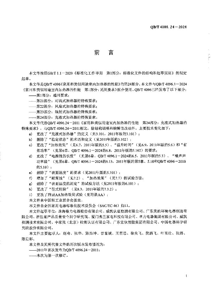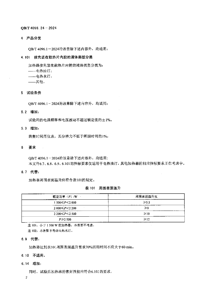 QB/T 4096.24-2024 家用和类似用途室内加热器的性能 第24部分:充液式加热器的特殊要求