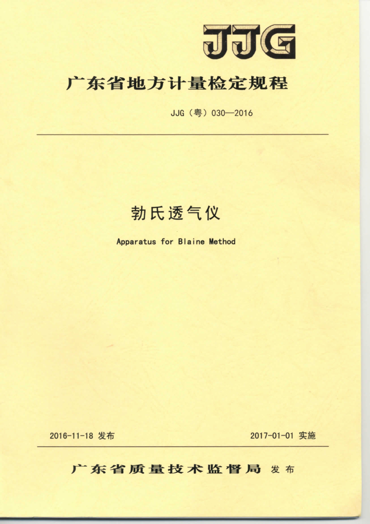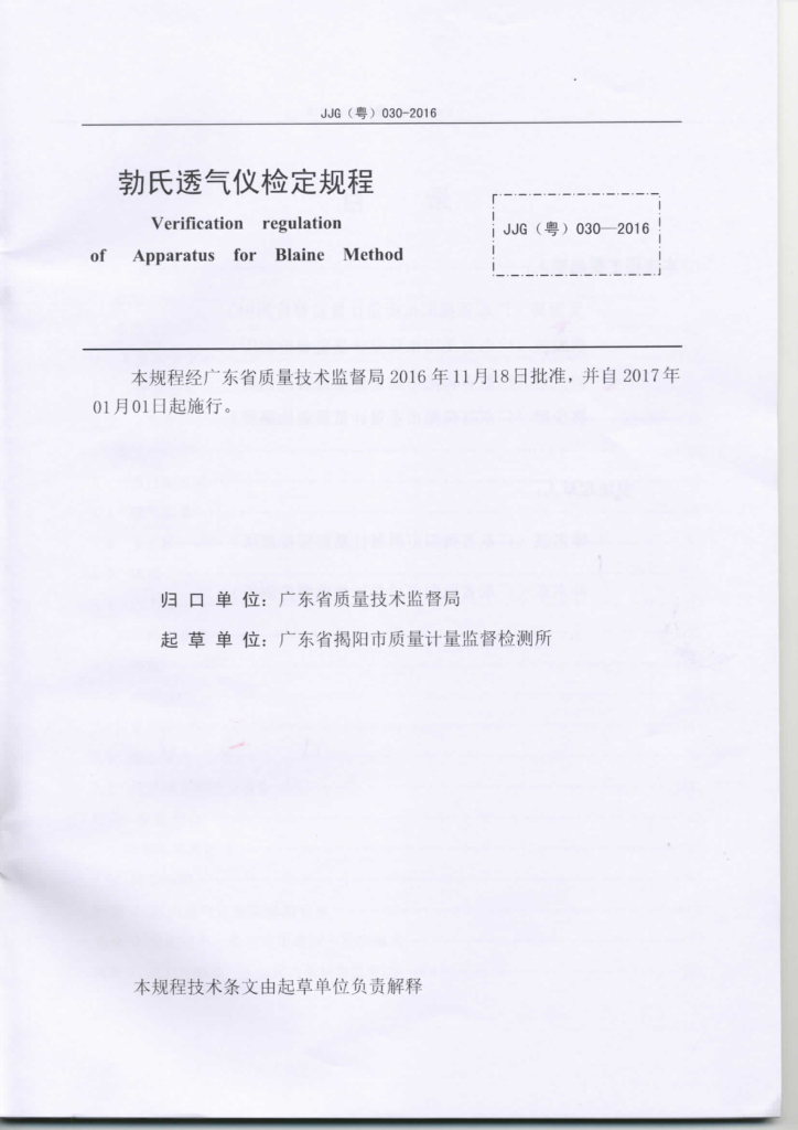 JJG(粤)030-2016 勃氏透气仪检定规程