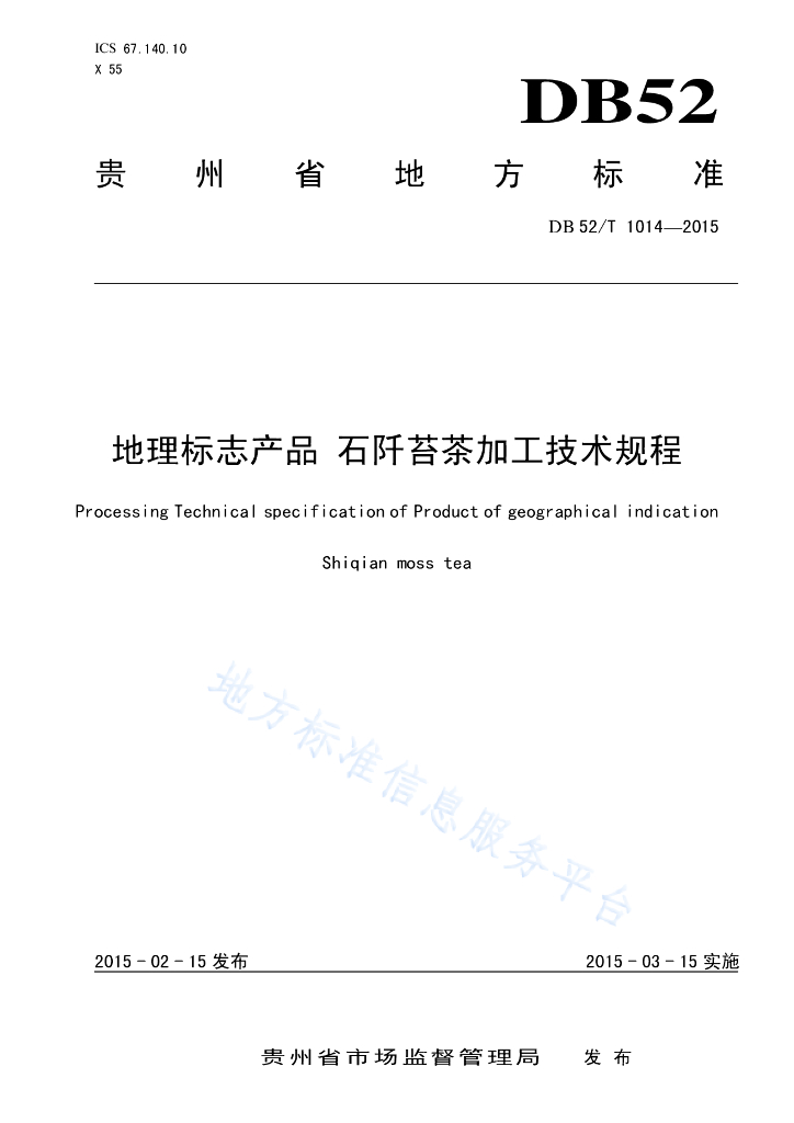 DB52/T 1014-2015 地理标志产品 石阡苔茶加工技术规程