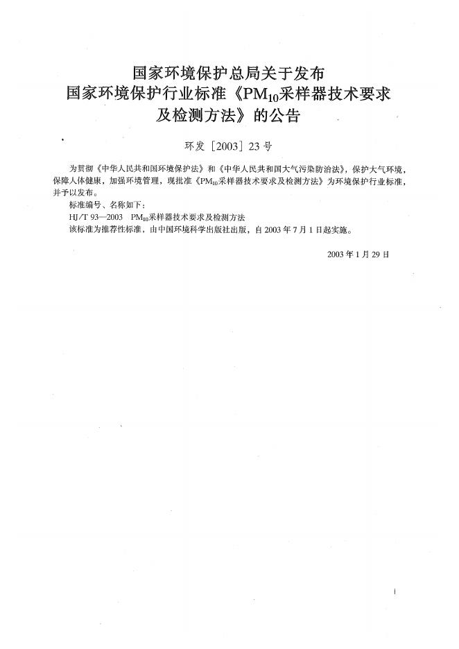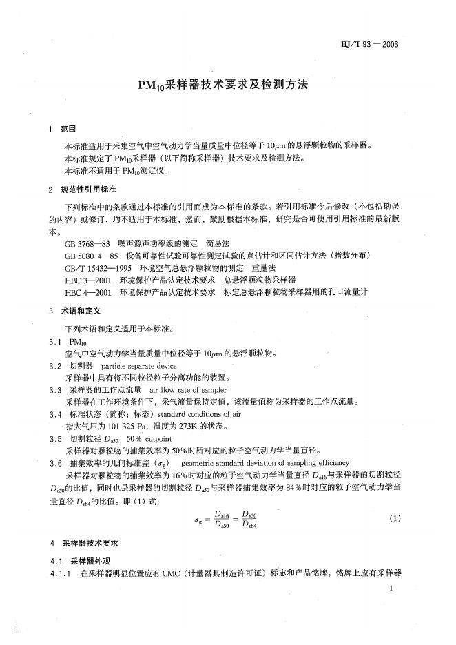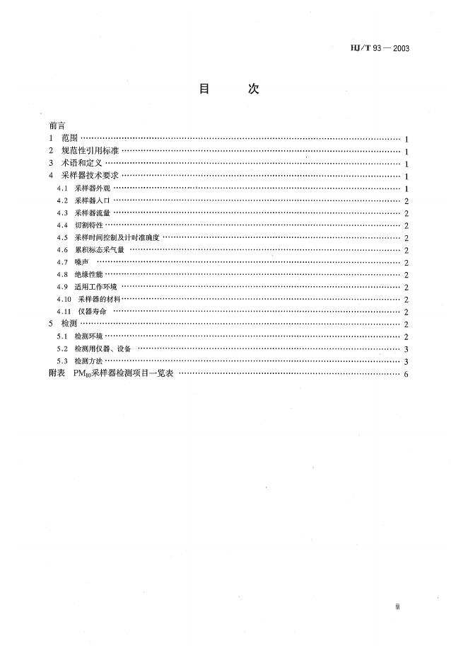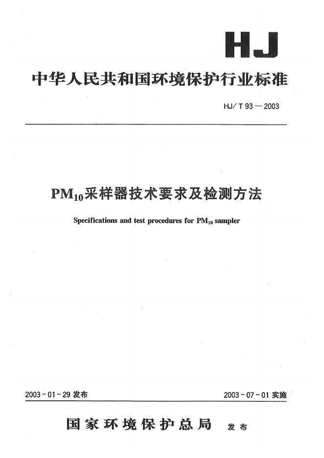 HJ/T 93-2003 PM10采样器技术要求及检测方法