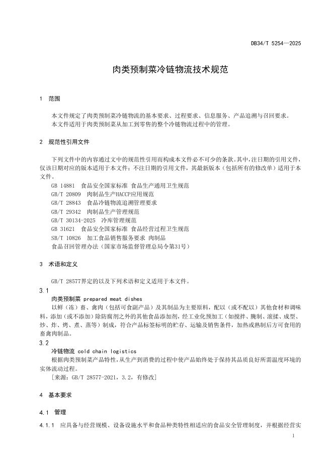 DB34/T 5254-2025 肉类预制菜冷链物流技术规范
