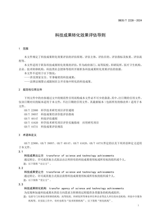 DB35/T 2228-2024 科技成果转化效果评估导则