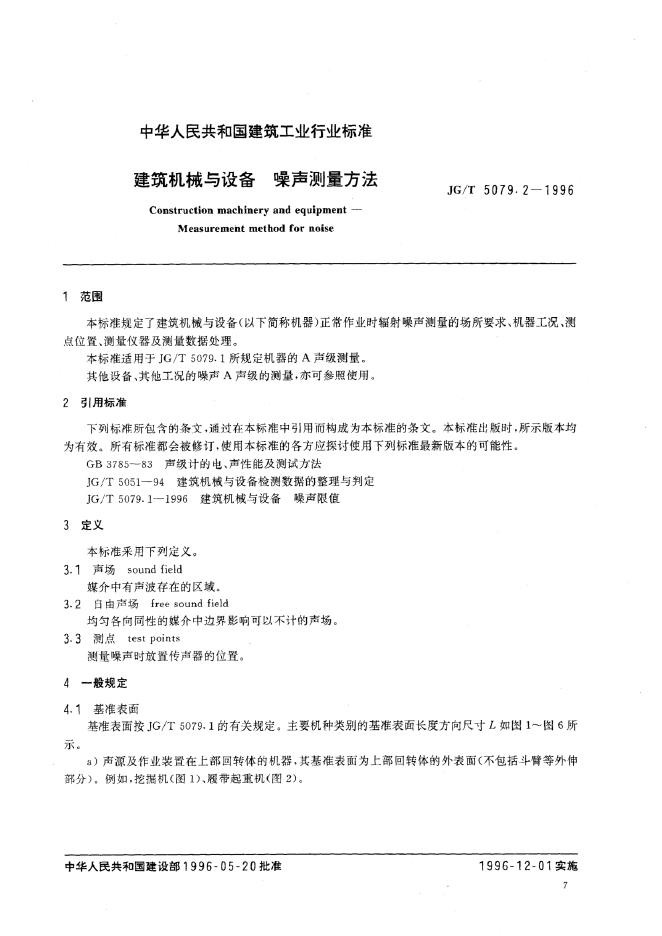 JG/T 5079.2-1995 建筑机械与设备噪声测量方法