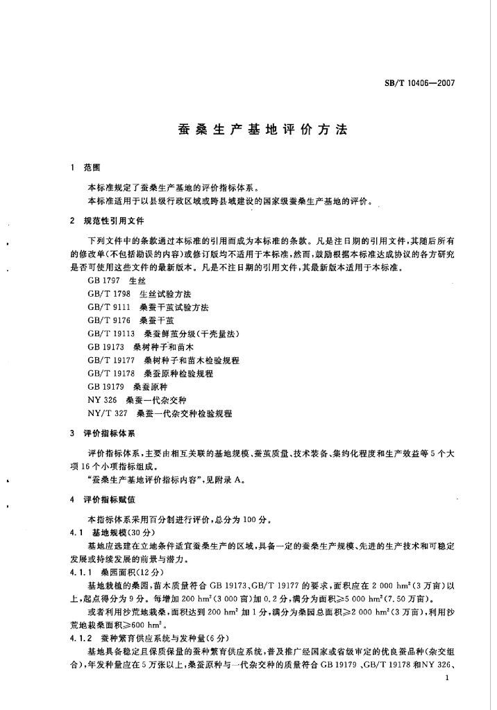 SB/T 10406-2007 蚕桑生产基地评价方法