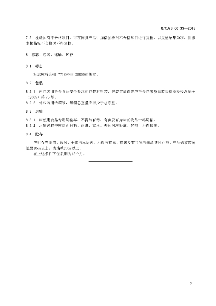 Q/XJYS 0013S-2018 雄基牌罗喜康/浓缩西芹籽精华素(固体饮料)