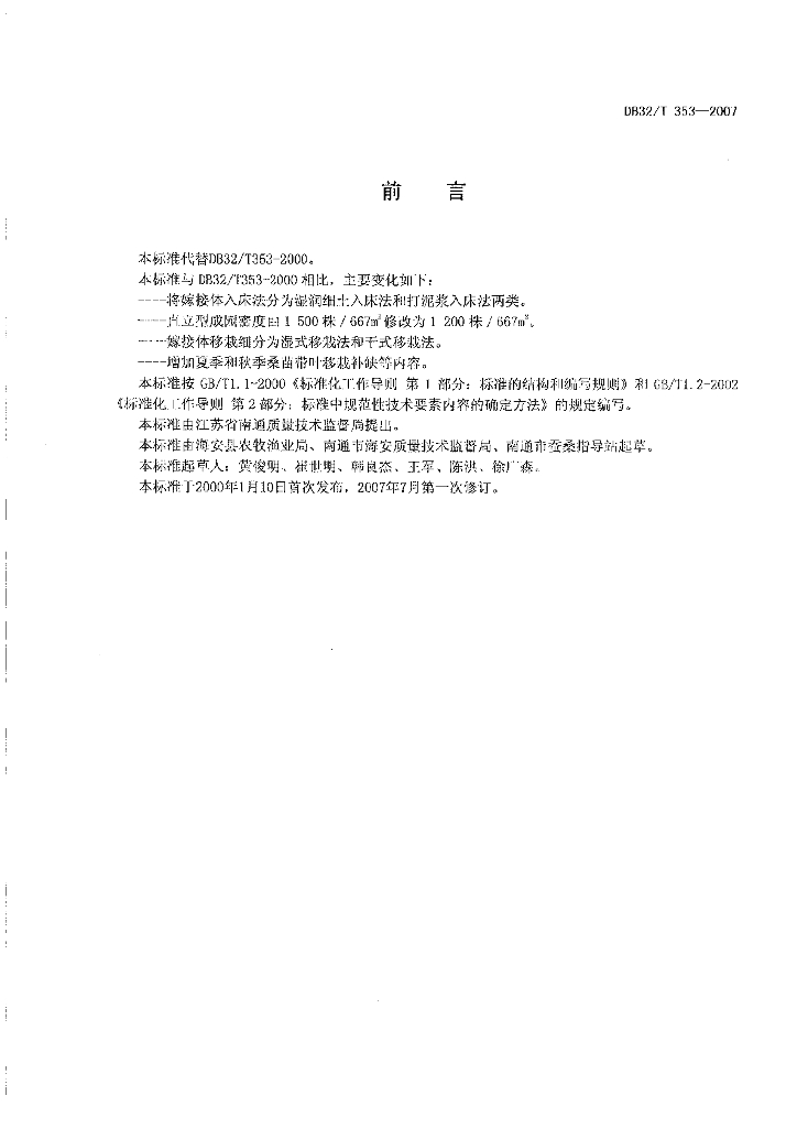 DB32/T 353-2007 桑树早春温床嫁接一步建园技术规程