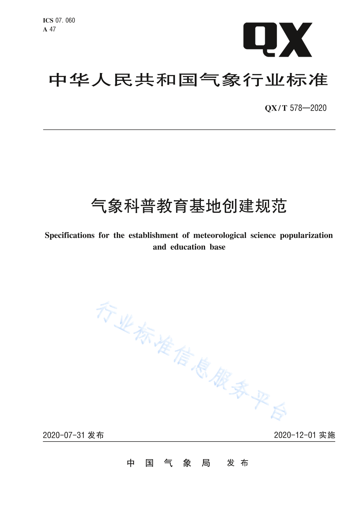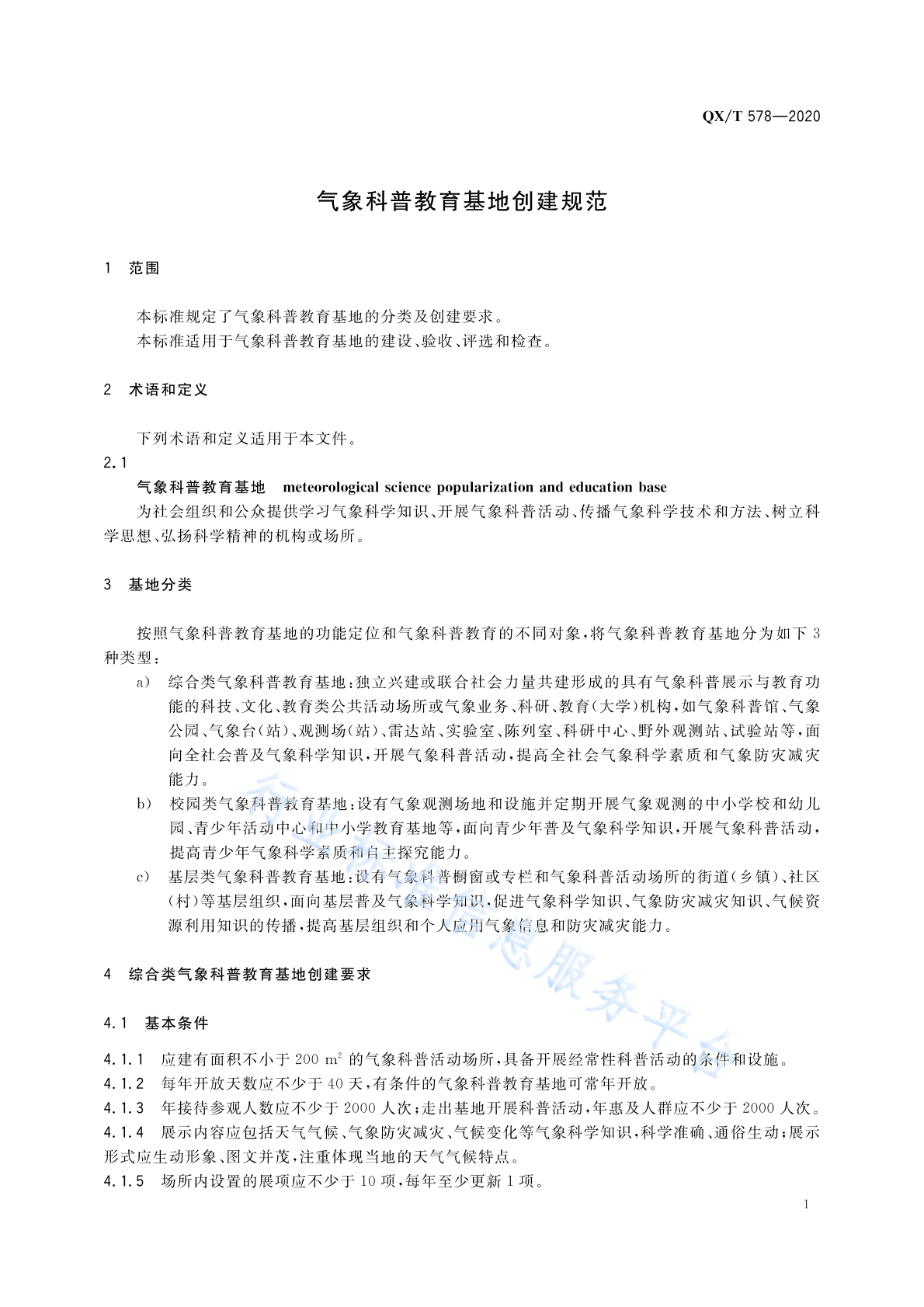 QX/T 578-2020 气象科普教育基地创建规范