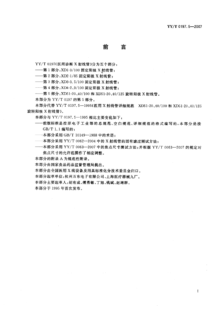 YY/T 0197.5-2007 医用诊断X射线管XD51-20、40/100和XD51-20、40/125旋转阳极X射线管