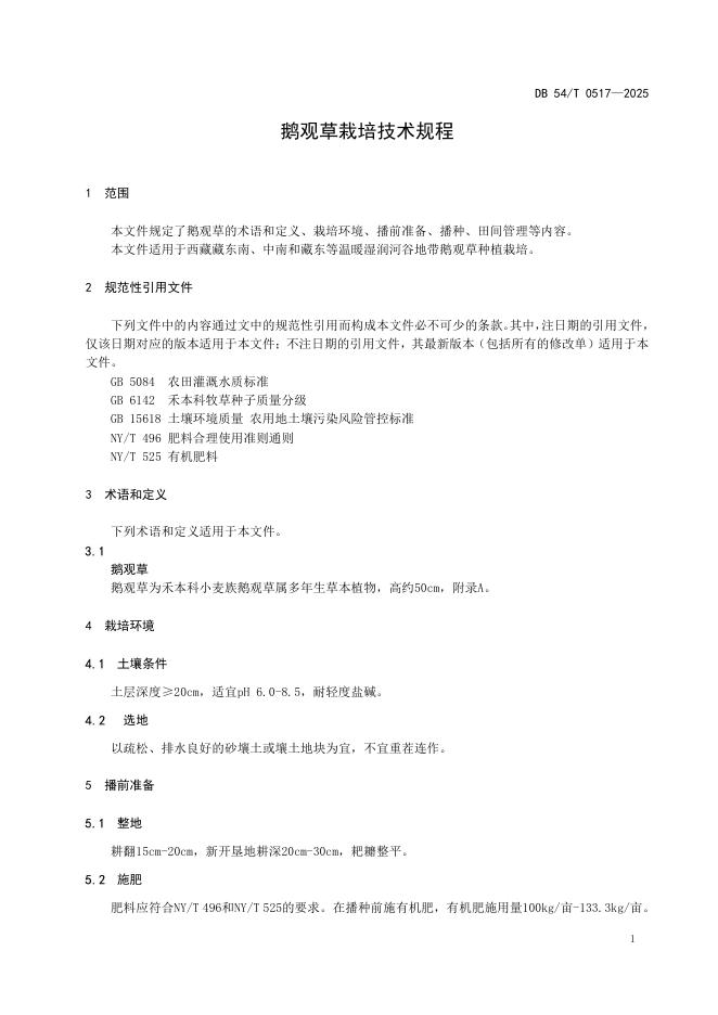 DB54/T 0517-2025 鹅观草栽培技术规程