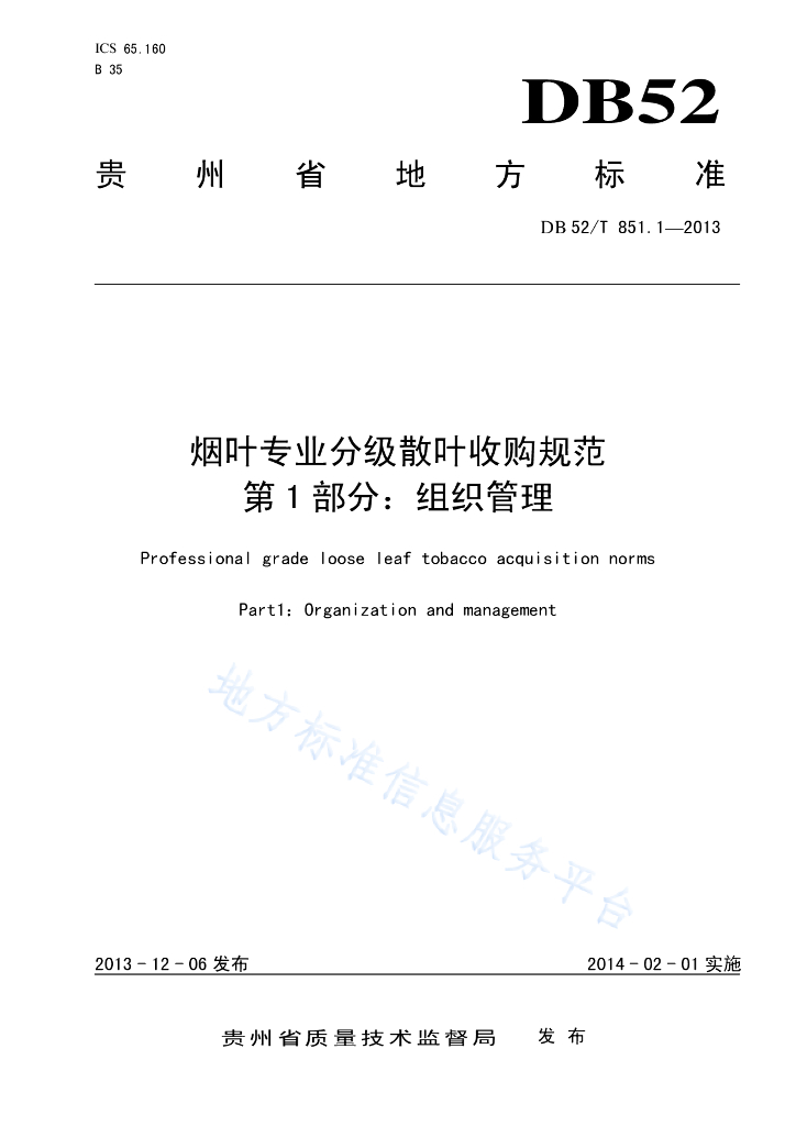 DB52/T 851.1-2013 烟叶专业分级散叶收购规范 第一部分:组织管理