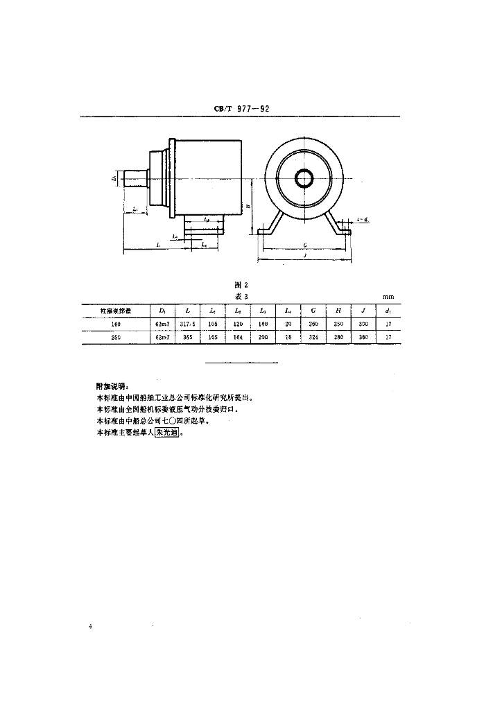 CB/T 977-1992 船用斜盘式轴向柱塞泵基本参数和安装连接尺寸