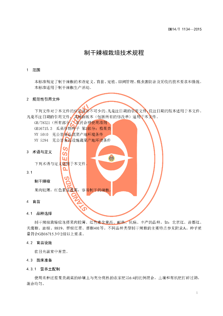 DB14/T 1134-2015 制干辣椒栽培技术规程