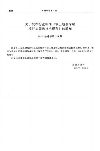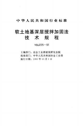 YBJ 225-1991 软土地基深层搅拌加固法技术规程