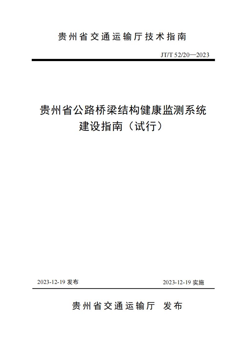 JT/T 52/20-2023 贵州省公路桥梁结构健康监测系统建设指南(试行)