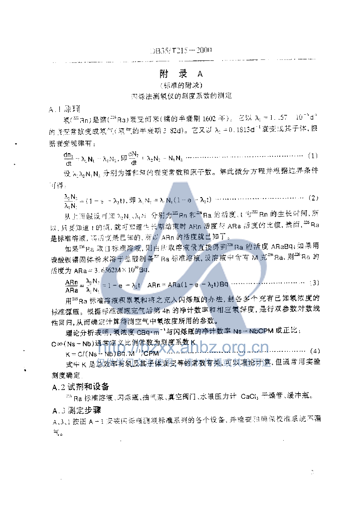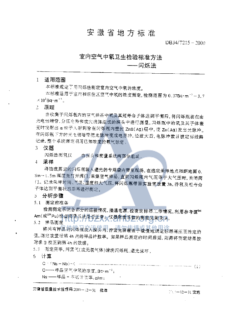 DB34/T 215-2000 室内空气中氡卫生检验标准方法-闪烁法