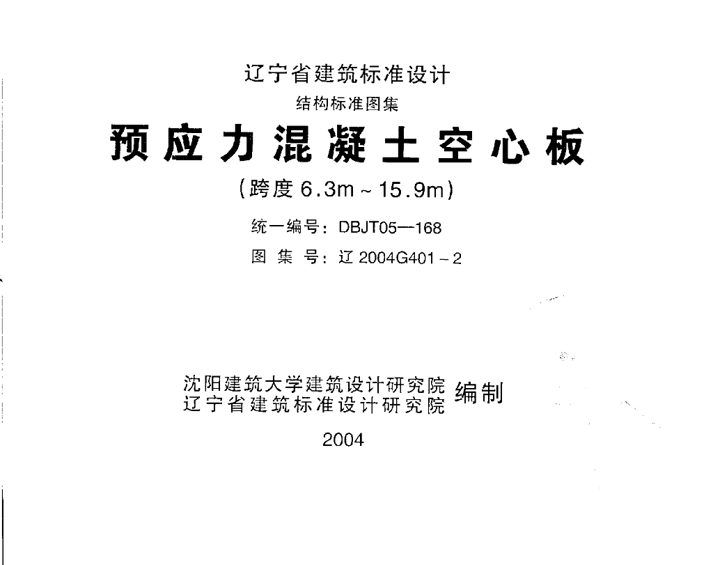 辽2004G401-2 预应力混凝土空心板(跨度6.3m~15.9m)图集