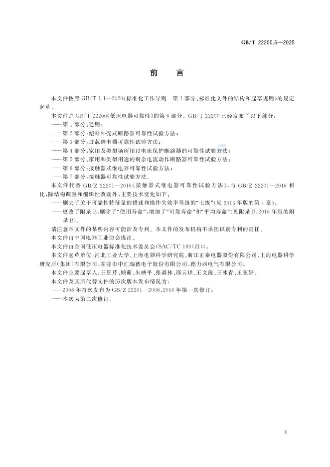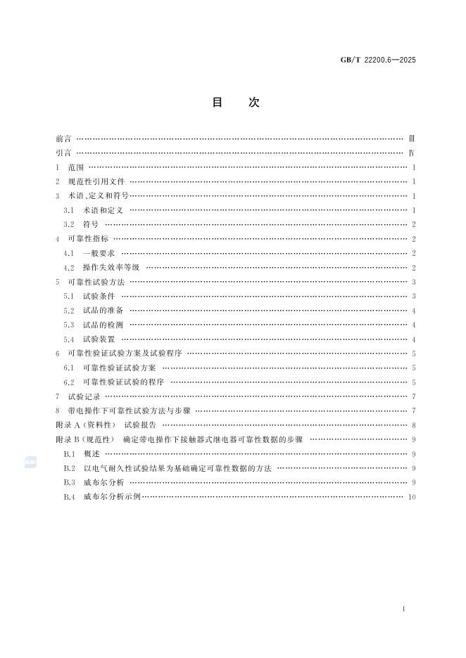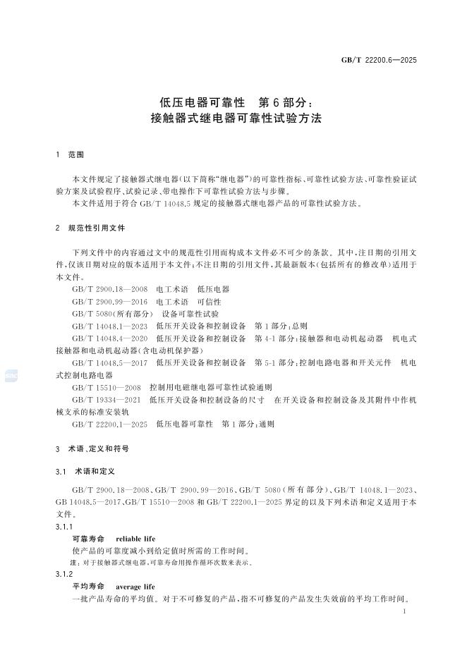 GB/T 22200.6-2025 低压电器可靠性 第6部分:接触器式继电器可靠性试验方法
