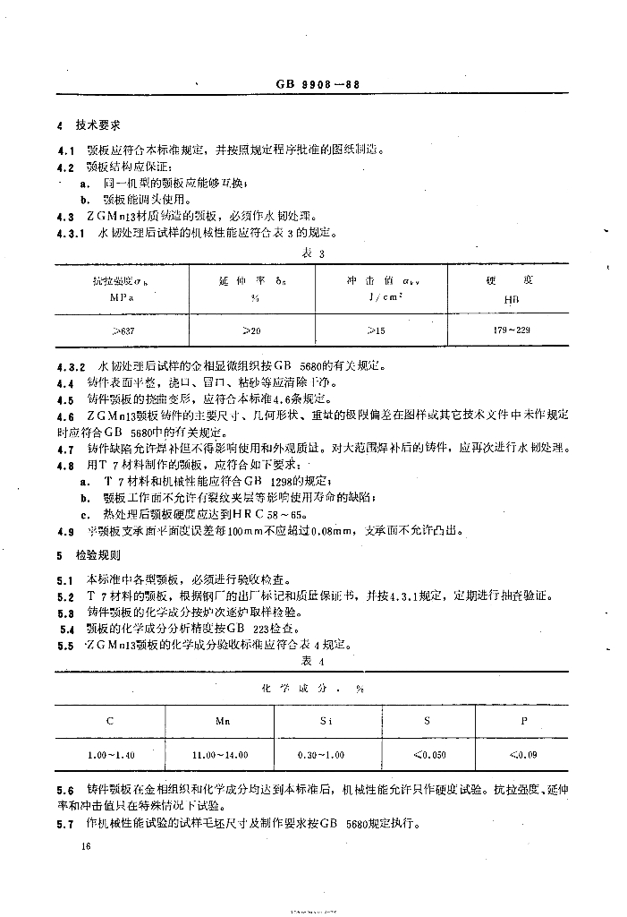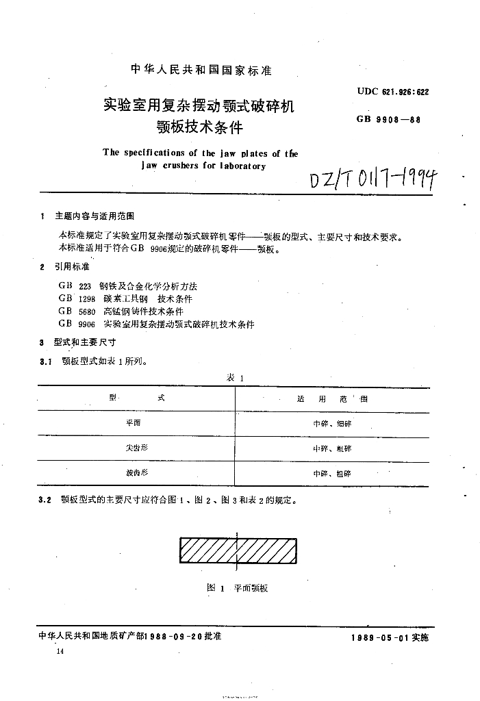 DZ/T 0117-1994 实验室用复杂摆动颚式破碎机颚板技术条件