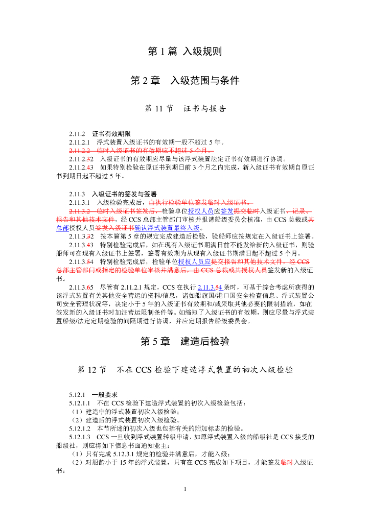 - 12中国船级社CCS:钢质海船入级规范 2024年第1次变更通告