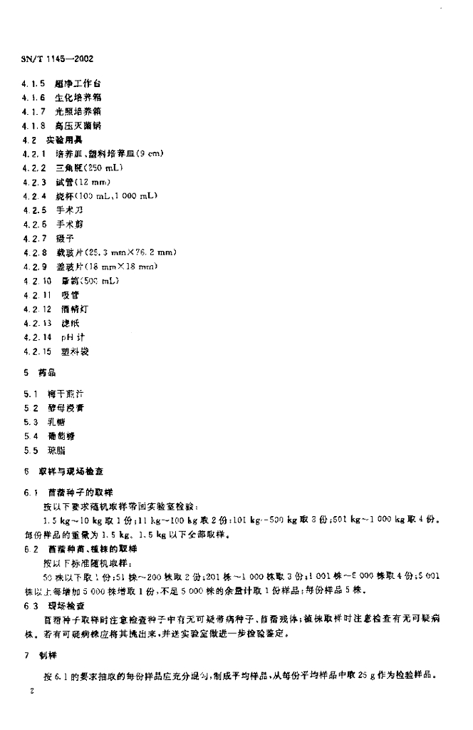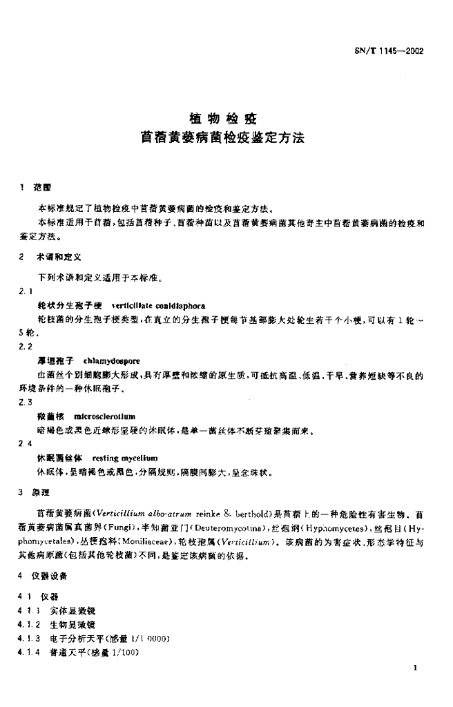SN/T 1145-2002 植物检疫 苜蓿黄萎病菌检疫鉴定方法