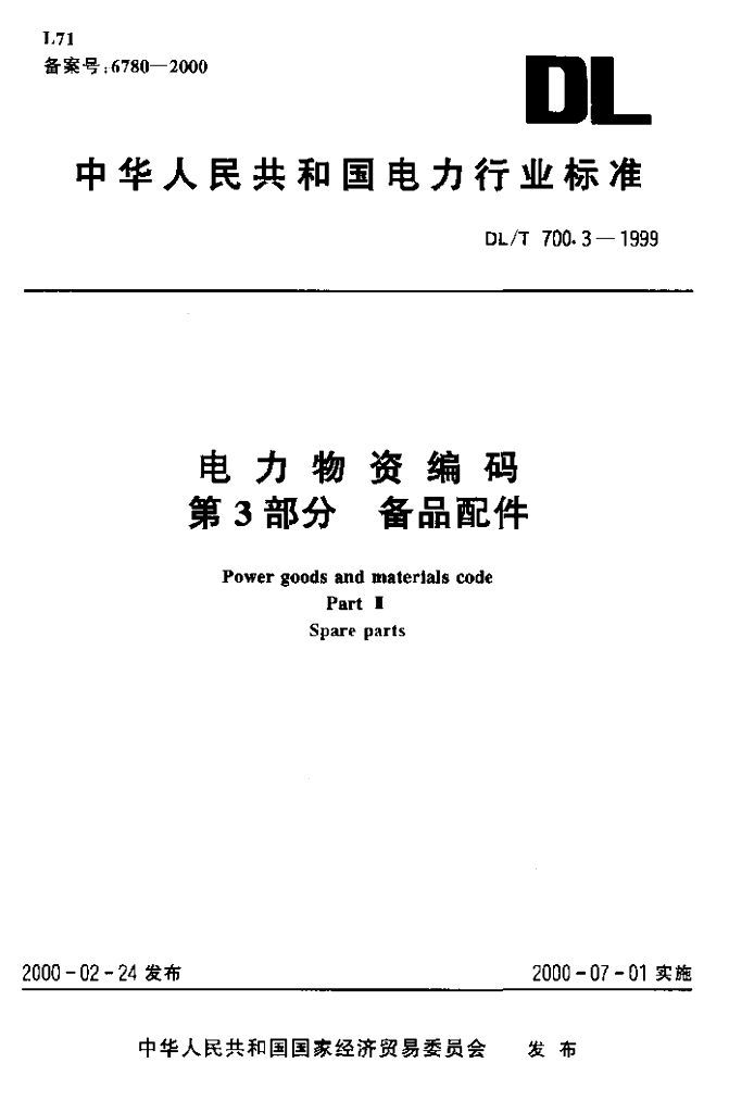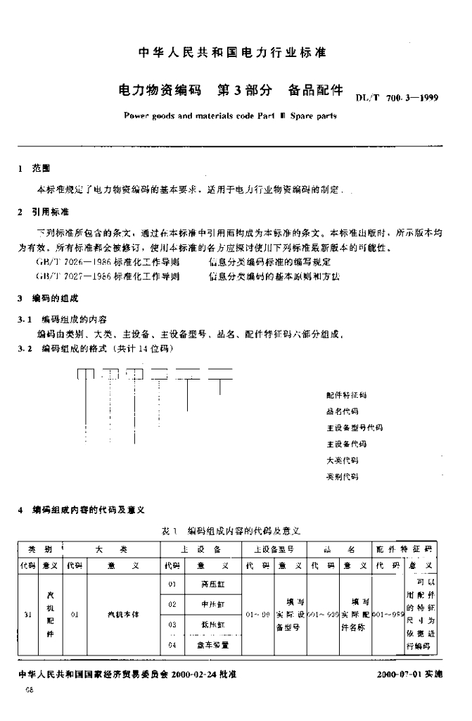 DL/T 700.3-1999 电力物资编码 第3部分 备品配件