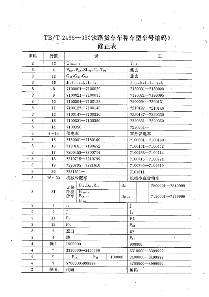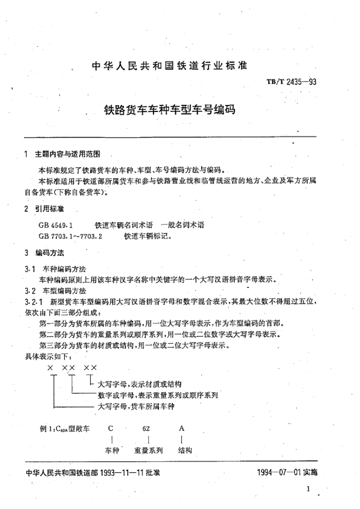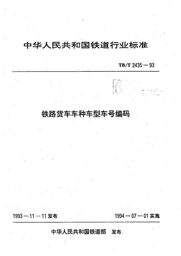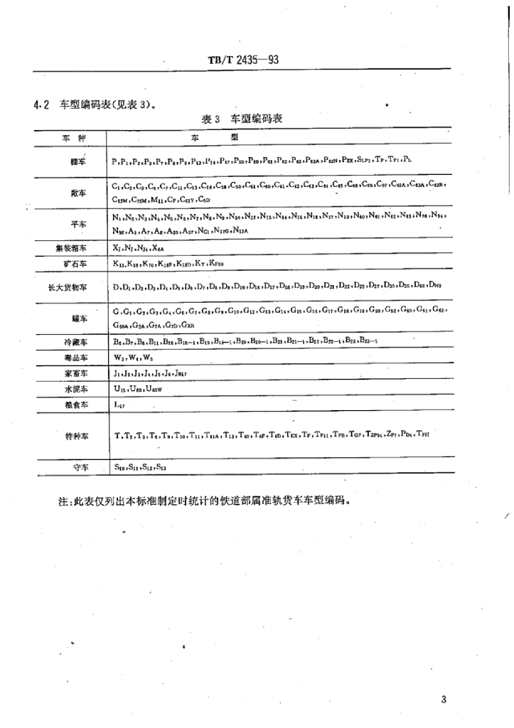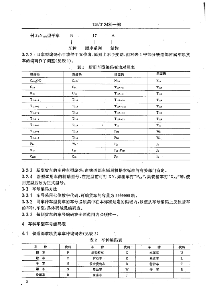TB/T 2435-1993 铁路货车车种车型车号编码