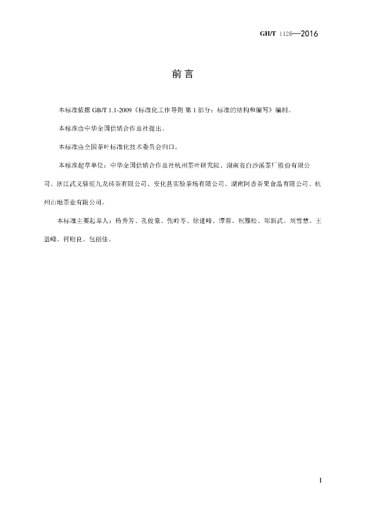 中华全国供销合作总社杭州茶叶研究院、湖南省白沙溪茶厂股份有限公司、浙江武义骆驼九龙砖茶有限公司、安化县实验茶场有限公司、湖南阿香茶果食品有限公司、杭州山地茶业有限公司